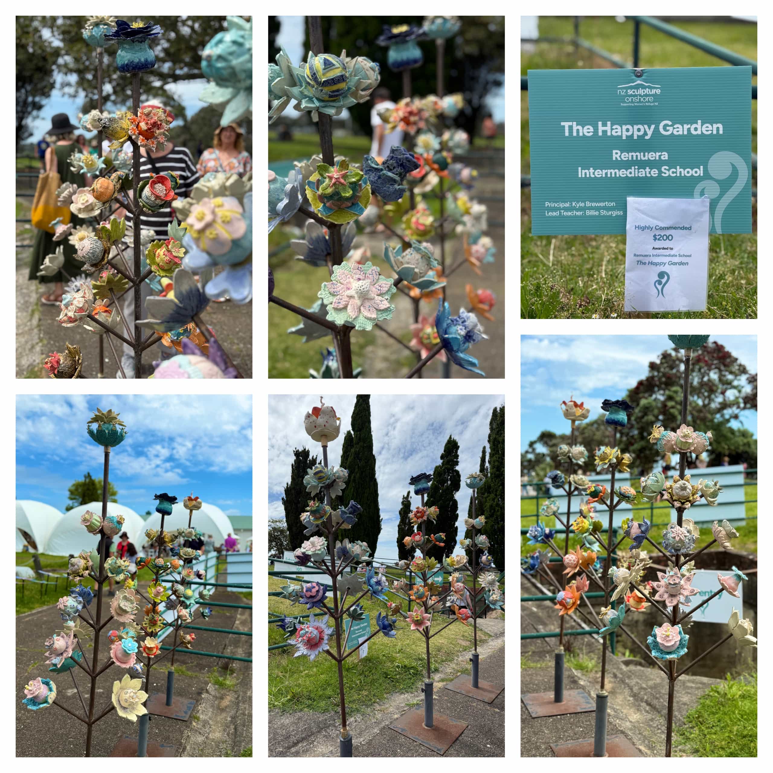 Following this, our students achieved a major highlight at this year's NZ Sculpture on Shore with their magnificent exhibit, "The Happy Garden." This masterpiece featured stunning, individually crafted ceramic flowers blooming on a metal tree, earning praise from every spectator.